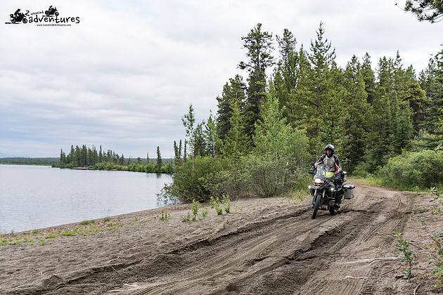 We rode them mostly on paved roads (that is what you would generally find on your way to Alaska and through Northern British Columbia and Yukon, unless you don’t need roads at all), but never had any problems to get off the pavement into sandy, muddy, rocky or whatever terrain was available there and before we got up North:- Winding paved and unpaved roads of Northern California – check!